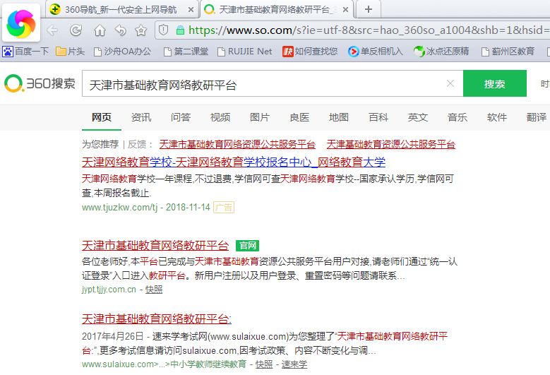 第二种方法:用搜索栏搜“天津市基础教育网络教研平台”