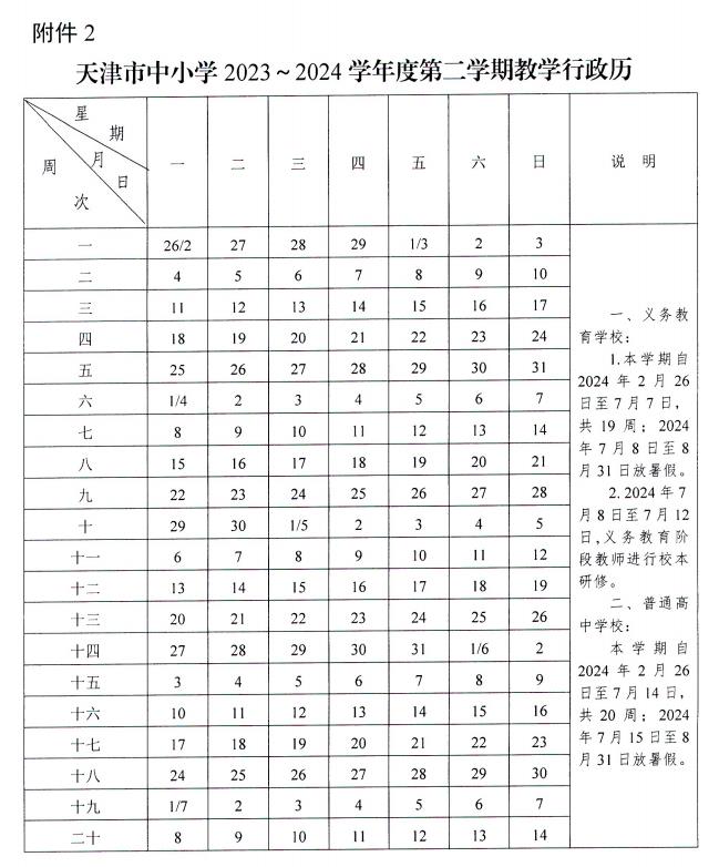 2.天津市中小学 2023 ~2024 学年度第二学期教学行政历
