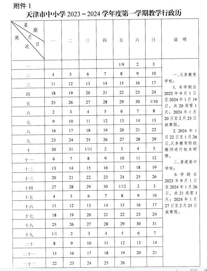 1.天津市中小学 2023 ~2024 学年度第一学期教学行政历