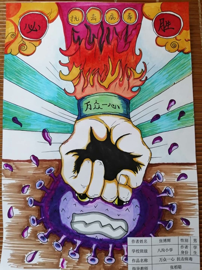 1 齐芳宁 《万众一心抗击病毒》 八沟中心小学 |