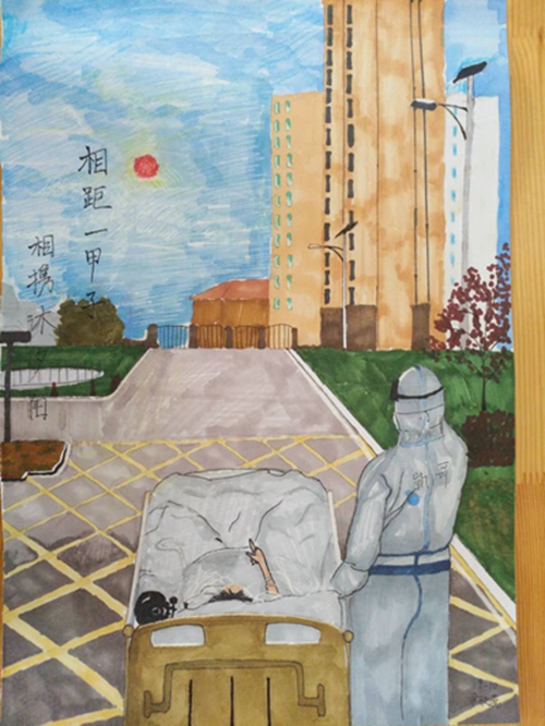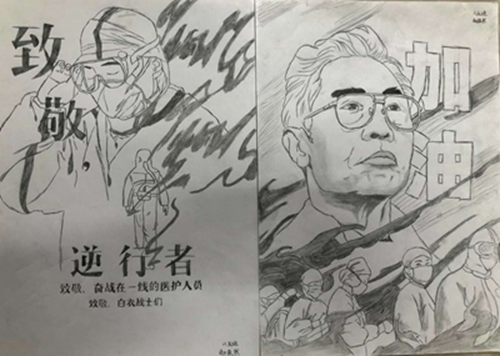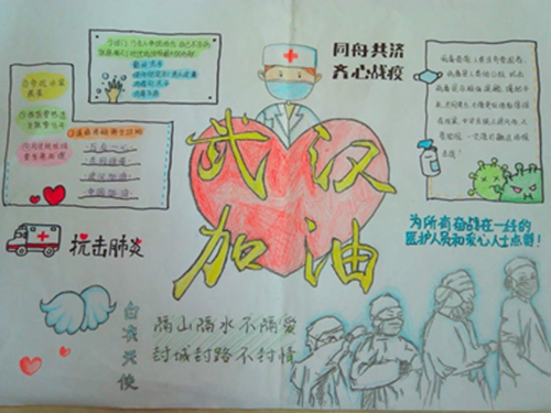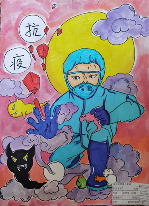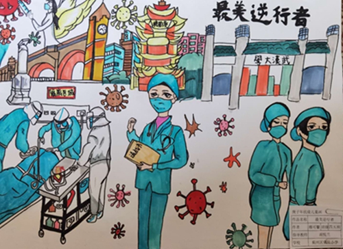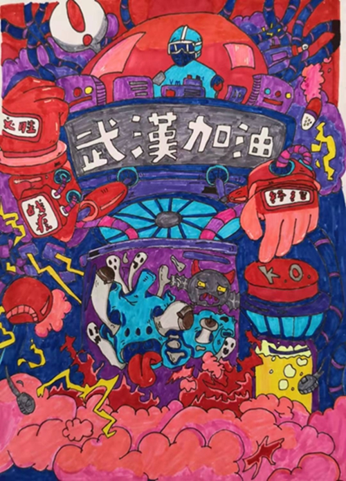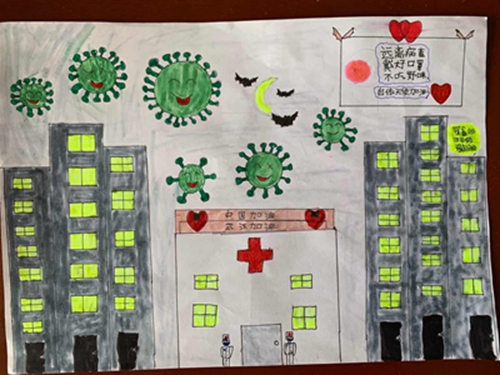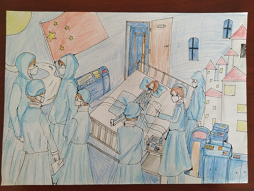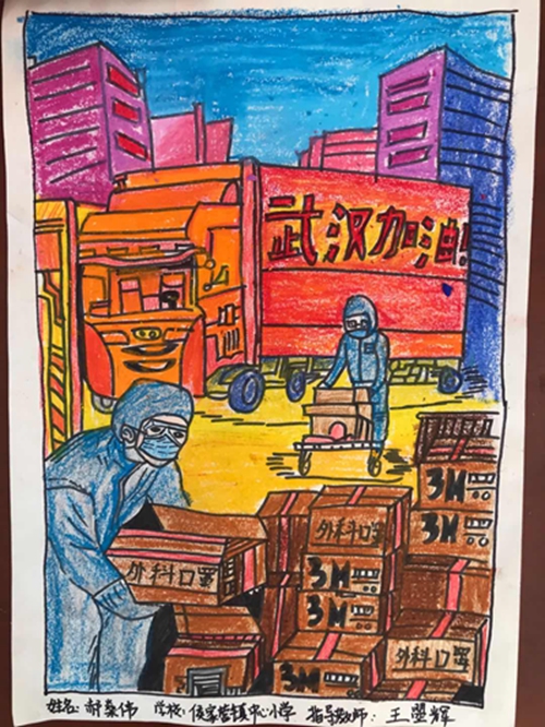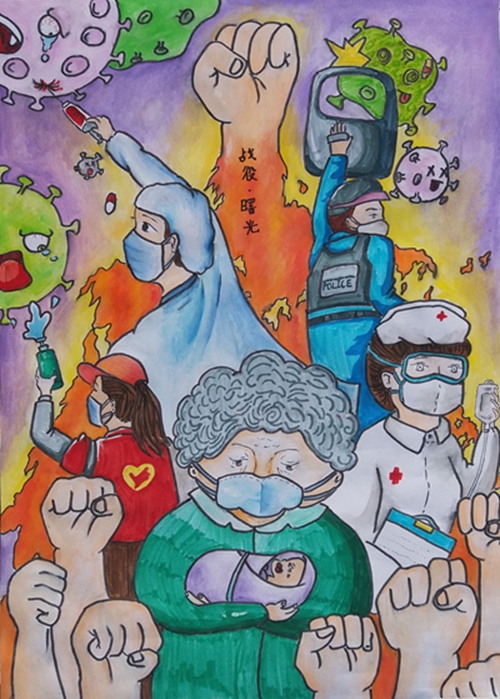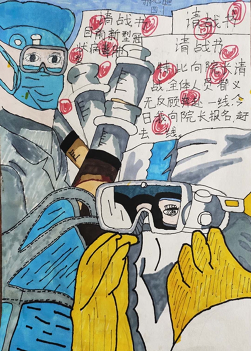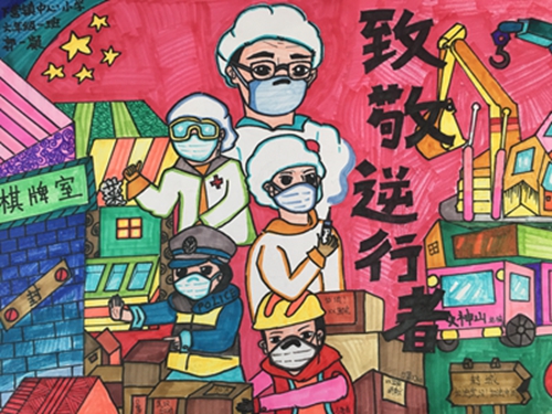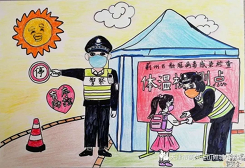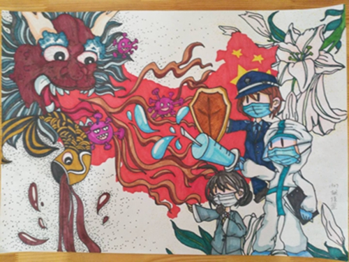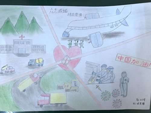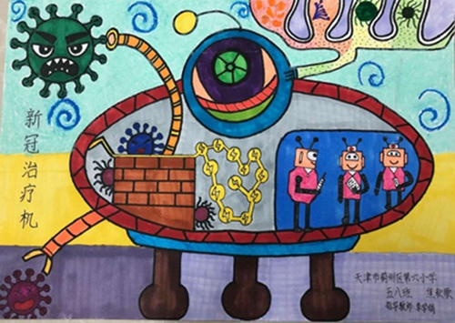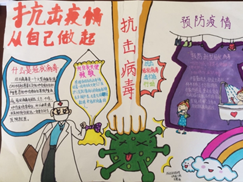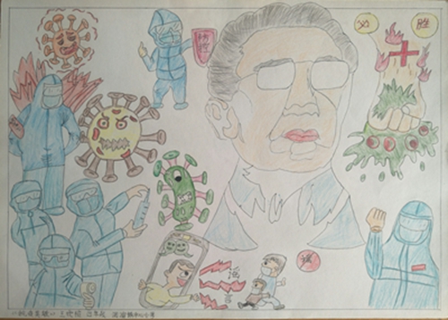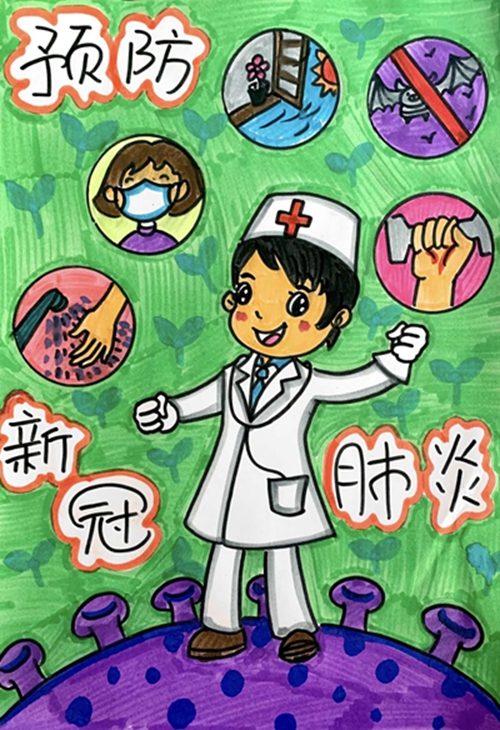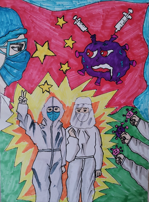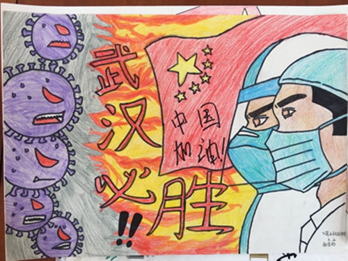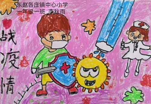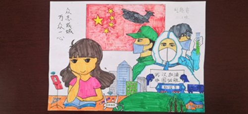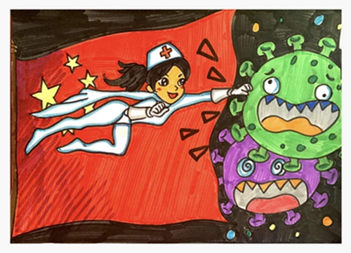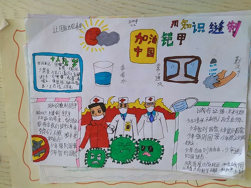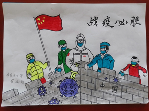 为认真落实习近平总书记重要指示精神和学校防控疫情工作部署与要求, “用好、用活战‘疫’的鲜活事例和先进事迹,引导学生感受全国人民万众一心、众志成城抗击疫情的壮美画卷;致敬最美的“逆行者”,表达师生对抗疫英雄的崇敬之情。蓟州区教育局依据市教委《关于做好疫情常态化阶段学校美育工作的通知》的要求,在全区中小学和幼儿园开展了“用知识缝制铠甲——庚子新冠的童画”专题活动。